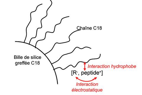 La phase stationnaire habituellement utilisée est constituée de particules sphériques de silice poreuse greffées écyle (C18). Ce type de phase est généralement utilisé pour la séparation de peptides.